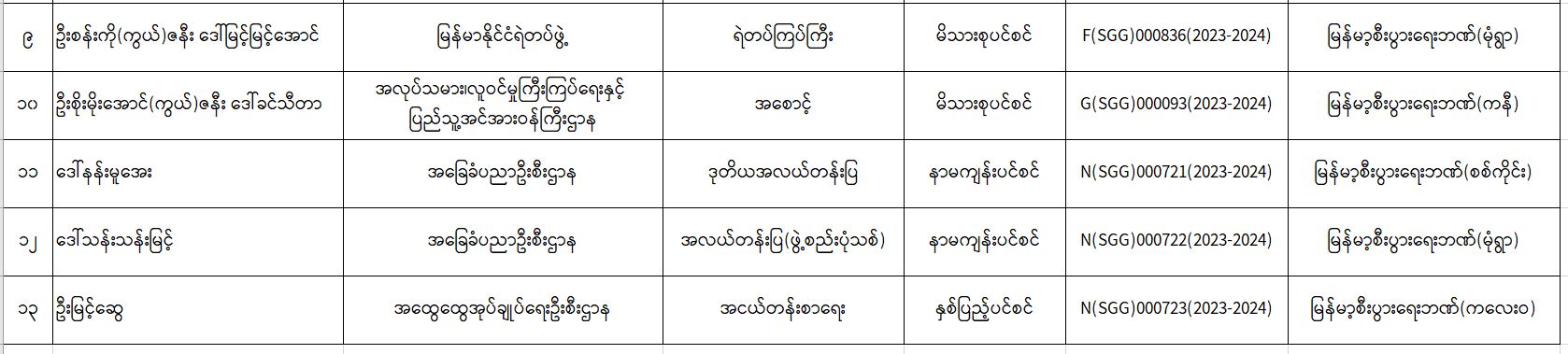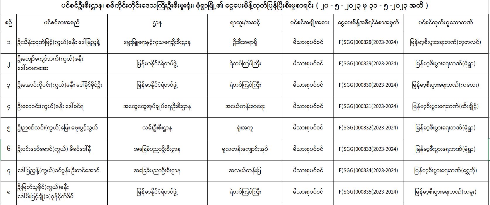 ပင်စင်ဦးစီးဌာန၊ စစ်ကိုင်းတိုင်းဒေသကြီးဦးစီးမှူးရုံး၏ ငွေပေးမိန့်ထုတ်ပြန်မှုစာရင်း (၂၀-၅-၂၀၂၃ မှ ၃၁-၅-၂၀၂၃)