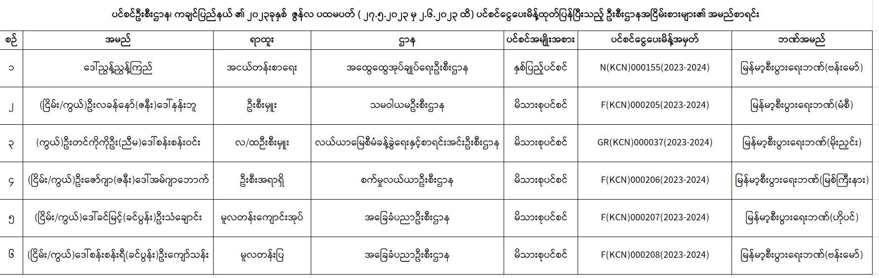 ပင်စင်ဦးစီးဌာန၊ ကချင်ပြည်နယ်ဦးစီးမှူးရုံး၏ ငွေပေးမိန့်ထုတ်ပြန်မှုစာရင်း ငွေပေးမိန့်ထုတ်ပြန်မှု စာရင်း ( ၂၇-၅-၂၀၂၃ မှ ၂-၆-၂၀၂၃ ထိ) pdfinance_editor Thu, 06/08/2023 - 14:06