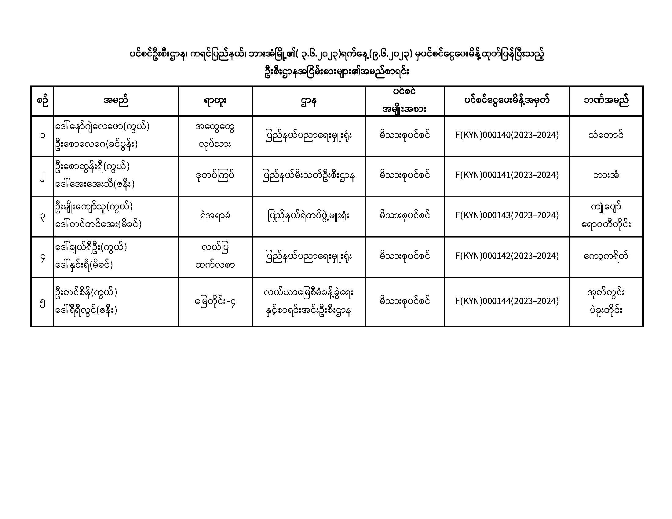 ပင်စင်ဦးစီးဌာန၊ ကရင်ပြည်နယ်ဦးစီးမှူးရုံး၏ ငွေပေးမိန့်ထုတ်ပြန်မှုစာရင်း (၃-၆-၂၀၂၃ မှ ၉-၆-၂၀၂၃) pdfinance_editor Thu, 06/08/2023 - 14:08