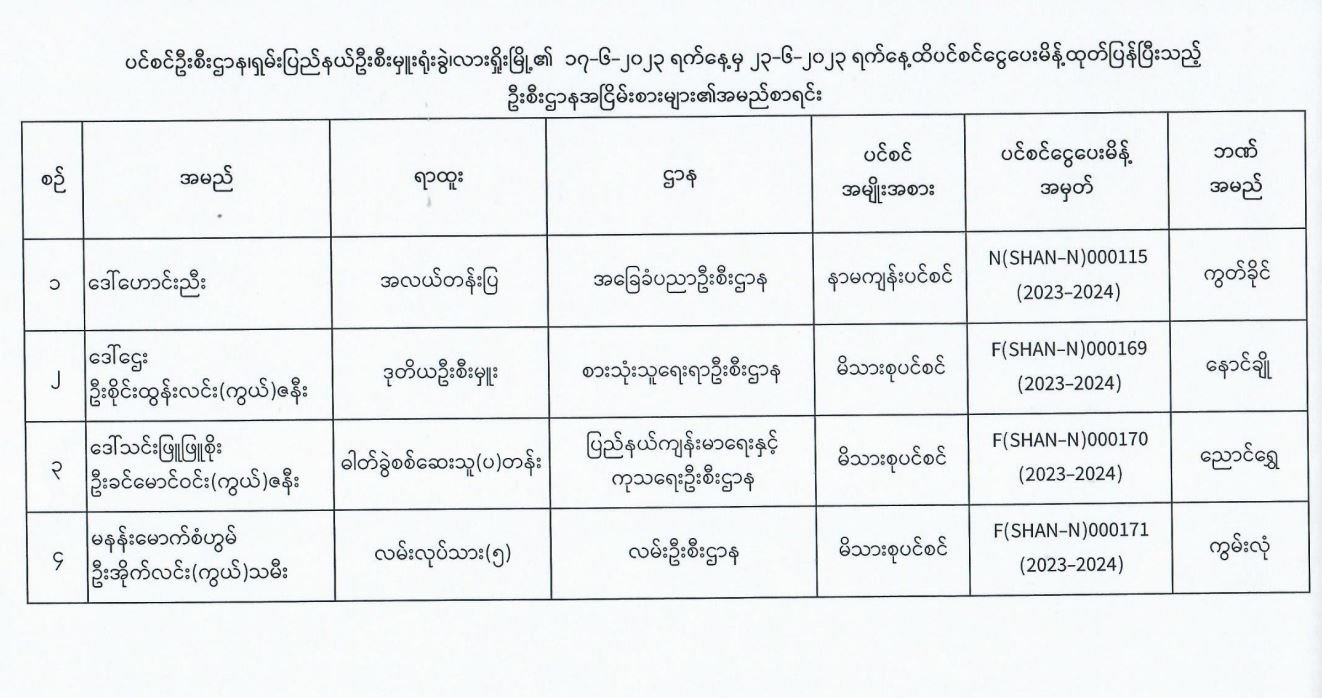 ပင်စင်ဦးစီးဌာန၊ ရှမ်းပြည်နယ်ရုံးခွဲ(လားရှိုးမြို့)၏ ငွေပေးမိန့်ထုတ်ပြန်မှုစာရင်း (၁၇-၆-၂၀၂၃ မှ ၂၃-၆-၂၀၂၃) pdfinance_editor Fri, 06/23/2023 - 10:13