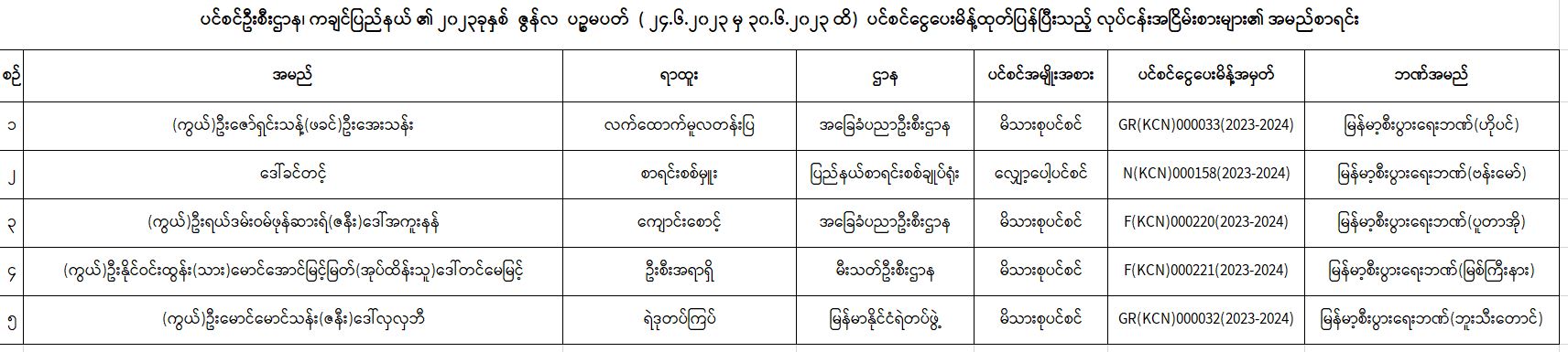 ပင်စင်ဦးစီးဌာန၊ ကချင်ပြည်နယ်ဦးစီးမှူးရုံး၏ ငွေပေးမိန့်ထုတ်ပြန်မှုစာရင်း ငွေပေးမိန့်ထုတ်ပြန်မှု စာရင်း ( ၂၄-၆-၂၀၂၃ မှ ၃၀-၆-၂၀၂၃ ထိ) pdfinance_editor Fri, 06/30/2023 - 16:26