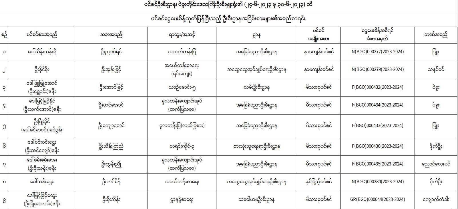 ပင်စင်ဦးစီးဌာန၊ ပဲခူးတိုင်းဒေသကြီးဦးစီးမှူးရုံး၏ ငွေပေးမိန့်ထုတ်ပြန်မှုစာရင်း (၂၄-၆-၂၀၂၃ မှ ၃၀-၆-၂၀၂၃) pdfinance_editor Fri, 06/30/2023 - 16:36