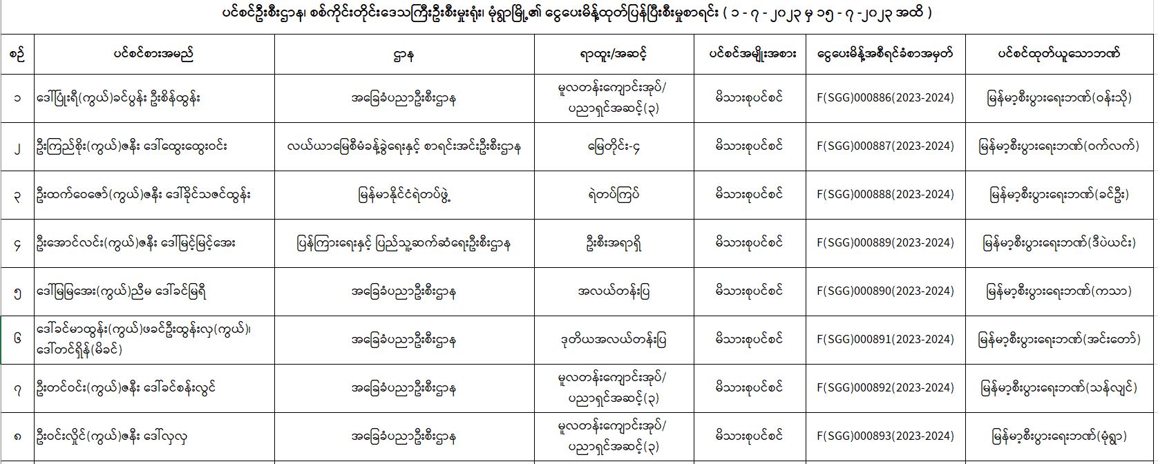 ပင်စင်ဦးစီးဌာန၊ စစ်ကိုင်းတိုင်းဒေသကြီးဦးစီးမှူးရုံး၏ ငွေပေးမိန့်ထုတ်ပြန်မှုစာရင်း (၁-၇-၂၀၂၃ မှ ၁၅-၇-၂၀၂၃) pdfinance_editor Mon, 07/17/2023 - 15:36