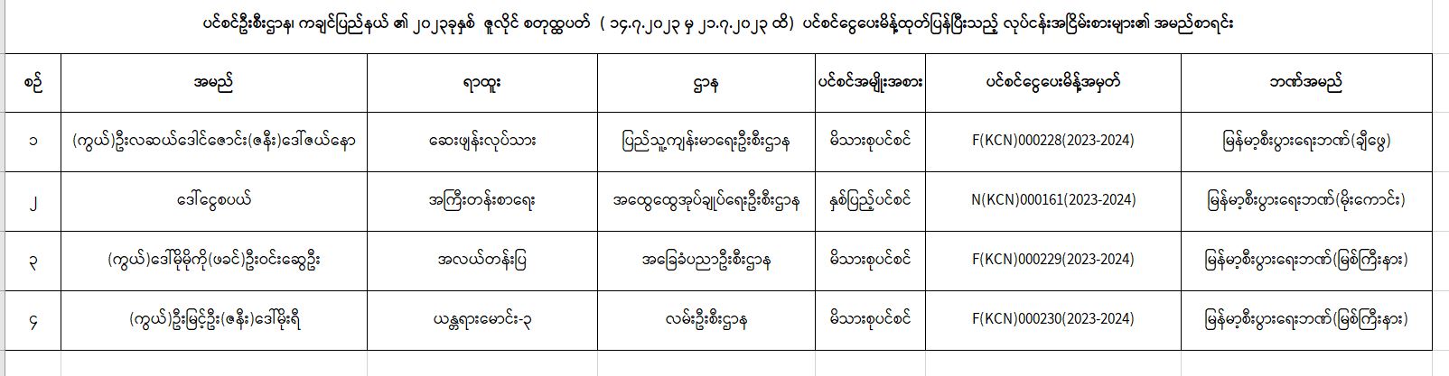 ပင်စင်ဦးစီးဌာန၊ ကချင်ပြည်နယ်ဦးစီးမှူးရုံး၏ ငွေပေးမိန့်ထုတ်ပြန်မှုစာရင်း ( ၁၄-၇-၂၀၂၃ မှ ၂၁-၇-၂၀၂၃ ထိ)