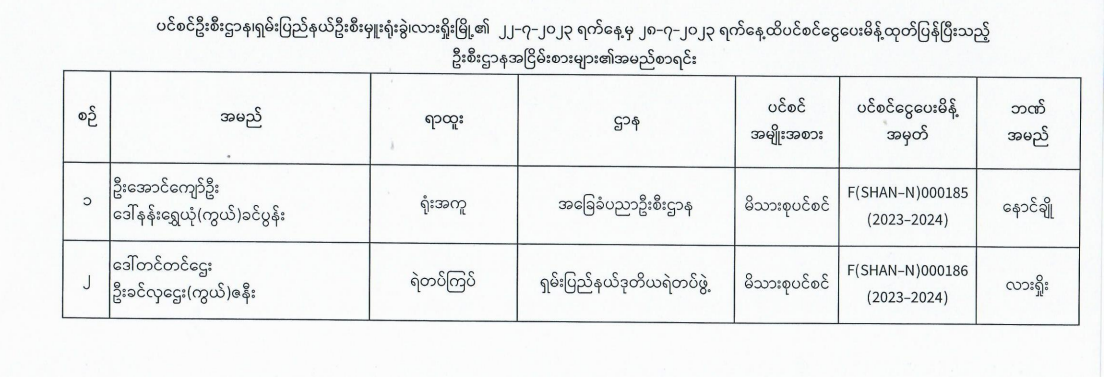ပင်စင်ဦးစီးဌာန၊ ရှမ်းပြည်နယ်ရုံးခွဲ(လားရှိုးမြို့)၏ ငွေပေးမိန့်ထုတ်ပြန်မှုစာရင်း (၂၂-၇-၂၀၂၃ မှ ၂၈-၇-၂၀၂၃) pdfinance_editor Fri, 07/28/2023 - 11:15