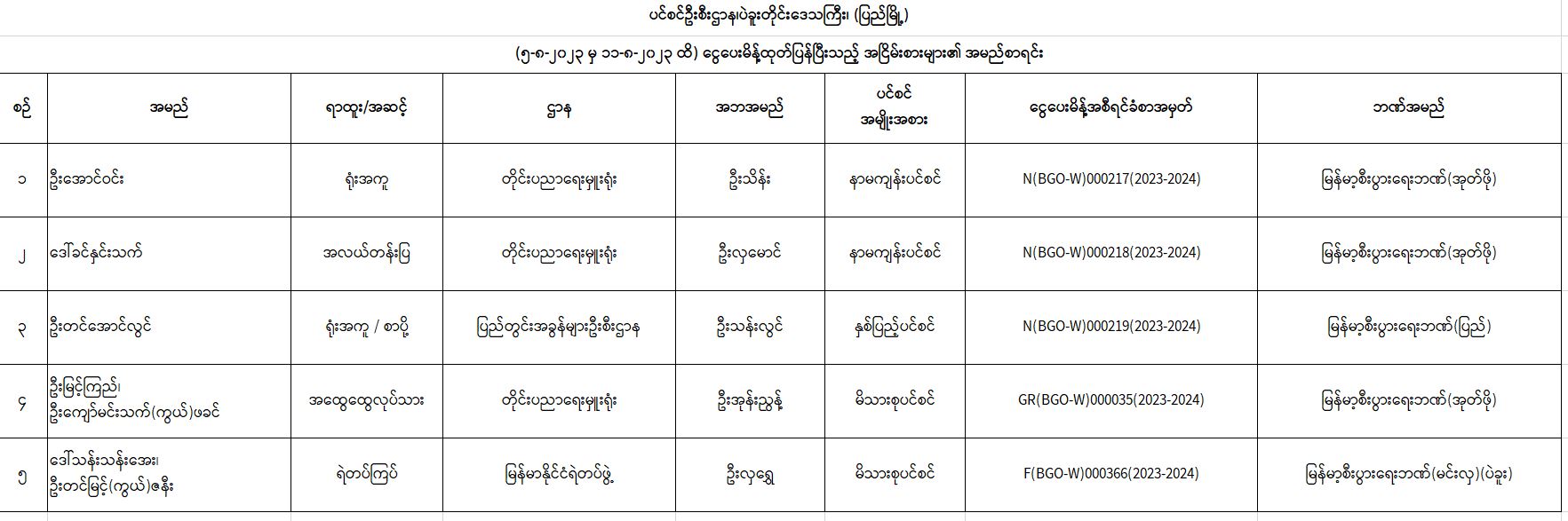 ပင်စင်ဦးစီးဌာန၊ ပဲခူးတိုင်းရုံးခွဲ(ပြည်မြို့)၏ ငွေပေးမိန့်ထုတ်ပြန်မှုစာရင်း (၅-၈-၂၀၂၃ မှ ၁၁-၈-၂၀၂၃) pdfinance_editor Tue, 08/15/2023 - 12:41