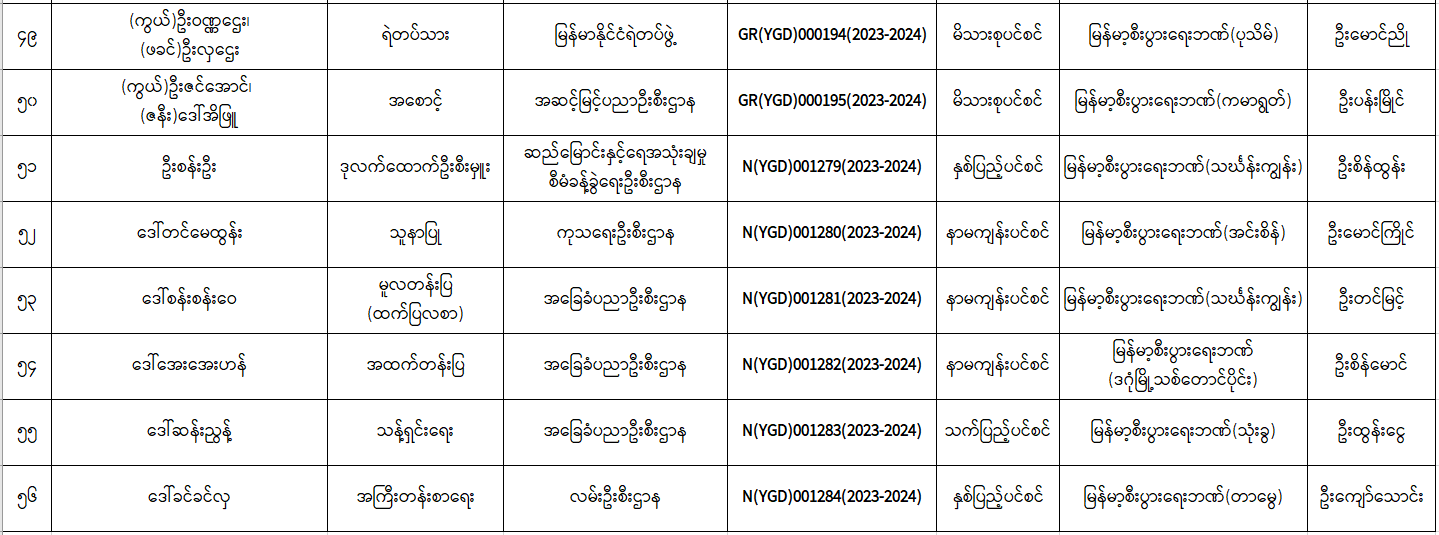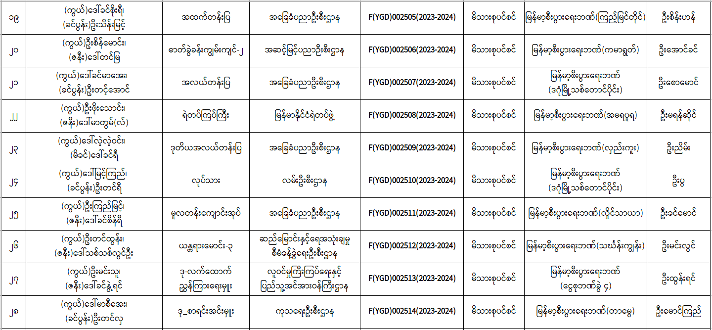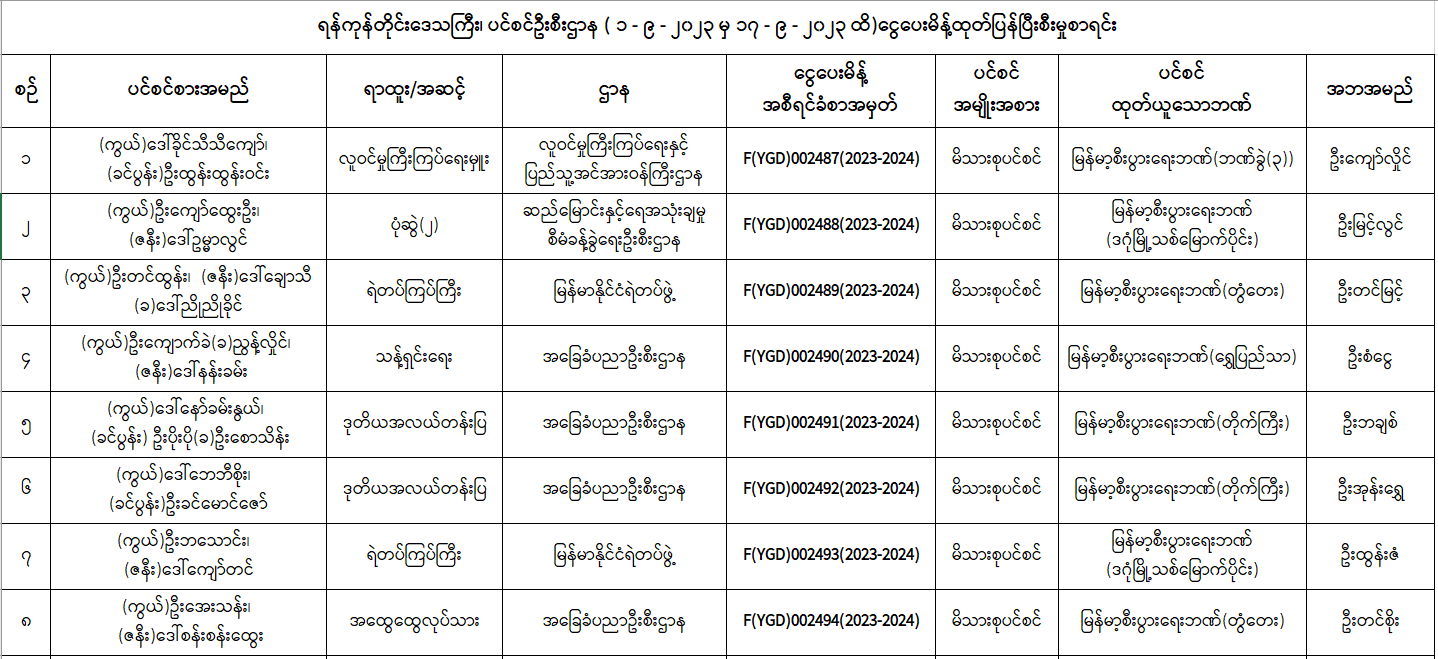 ပင်စင်ဦးစီးဌာန၊ ရန်ကုန်တိုင်းဒေသကြီးဦးစီးမှူးရုံး၏ ငွေပေးမိန့်ထုတ်ပြန်မှုစာရင်း (၁-၉-၂၀၂၃ မှ ၁၇-၉-၂၀၂၃) pdfinance_editor Mon, 09/18/2023 - 16:11