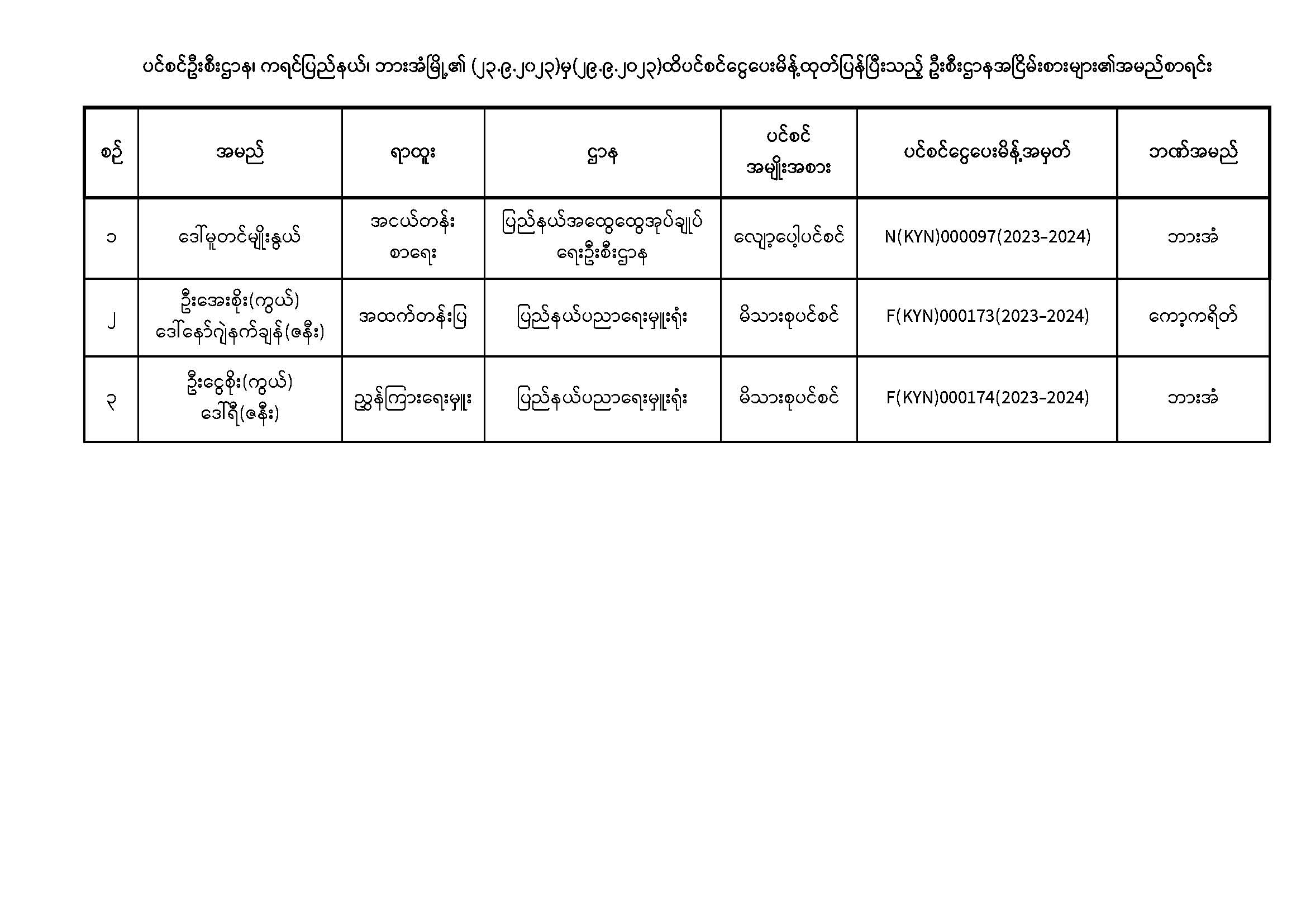 ပင်စင်ဦးစီးဌာန၊ ကရင်ပြည်နယ်ဦးစီးမှူးရုံး၏ ငွေပေးမိန့်ထုတ်ပြန်မှုစာရင်း (၂၃-၉-၂၀၂၃ မှ ၂၉-၉-၂၀၂၃)
