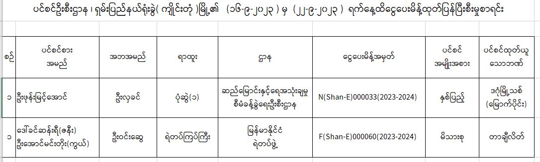 ပင်စင်ဦးစီးဌာန၊ ရှမ်းပြည်နယ်ရုံးခွဲ(ကျိုင်းတုံမြို့)၏ ငွေပေးမိန့်ထုတ်ပြန်မှုစာရင်း (၁၆-၉-၂၀၂၃ မှ ၂၂-၉-၂၀၂၃) pdfinance_editor Wed, 10/04/2023 - 10:44