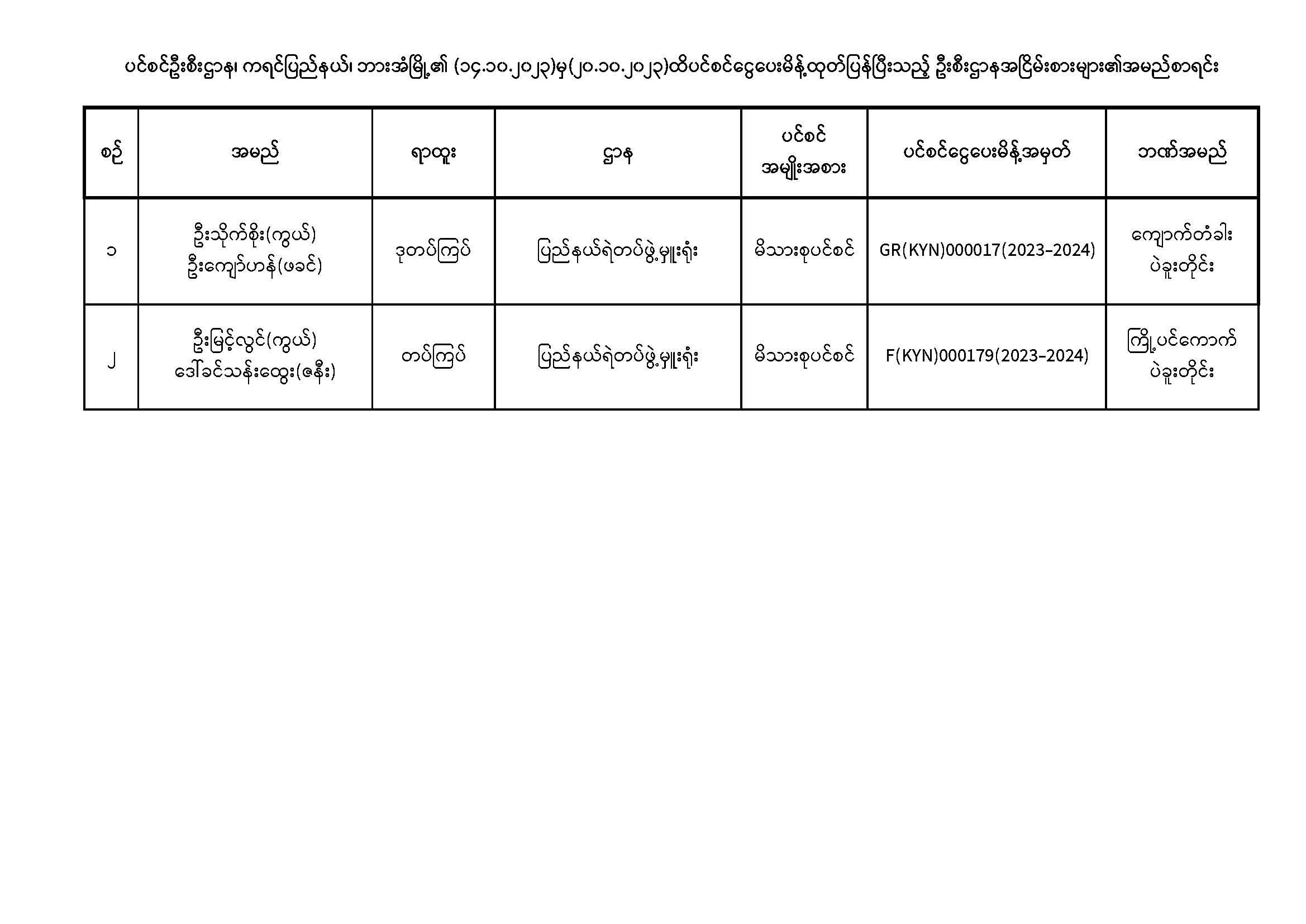ပင်စင်ဦးစီးဌာန၊ ကရင်ပြည်နယ်ဦးစီးမှူးရုံး၏ ငွေပေးမိန့်ထုတ်ပြန်မှုစာရင်း (၁၄-၁၀-၂၀၂၃ မှ ၂၀-၁၀-၂၀၂၃) pdfinance_editor Thu, 10/19/2023 - 15:32