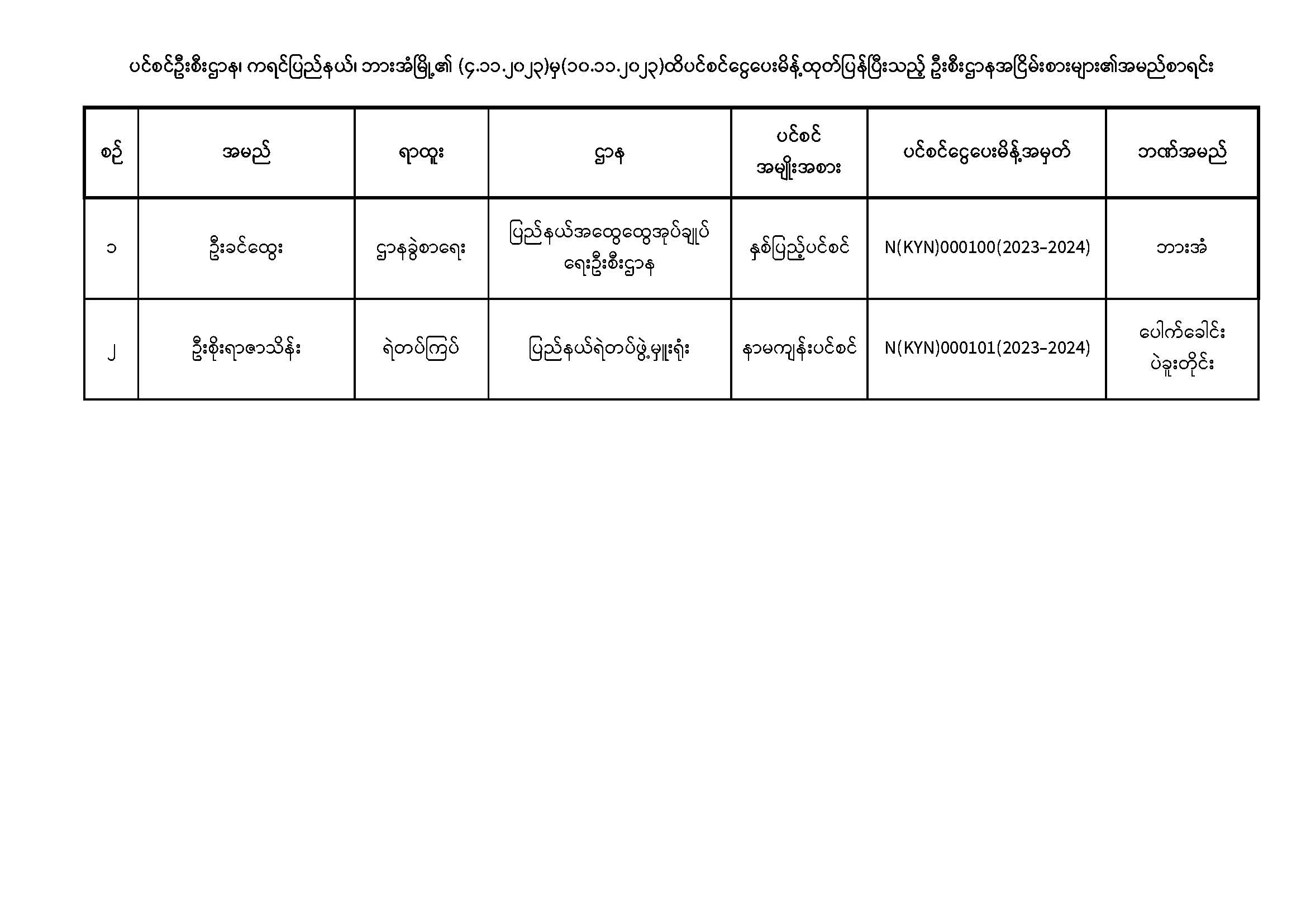 ပင်စင်ဦးစီးဌာန၊ ကရင်ပြည်နယ်ဦးစီးမှူးရုံး၏ ငွေပေးမိန့်ထုတ်ပြန်မှုစာရင်း (၄-၁၁-၂၀၂၃ မှ ၁၀-၁၁-၂၀၂၃)