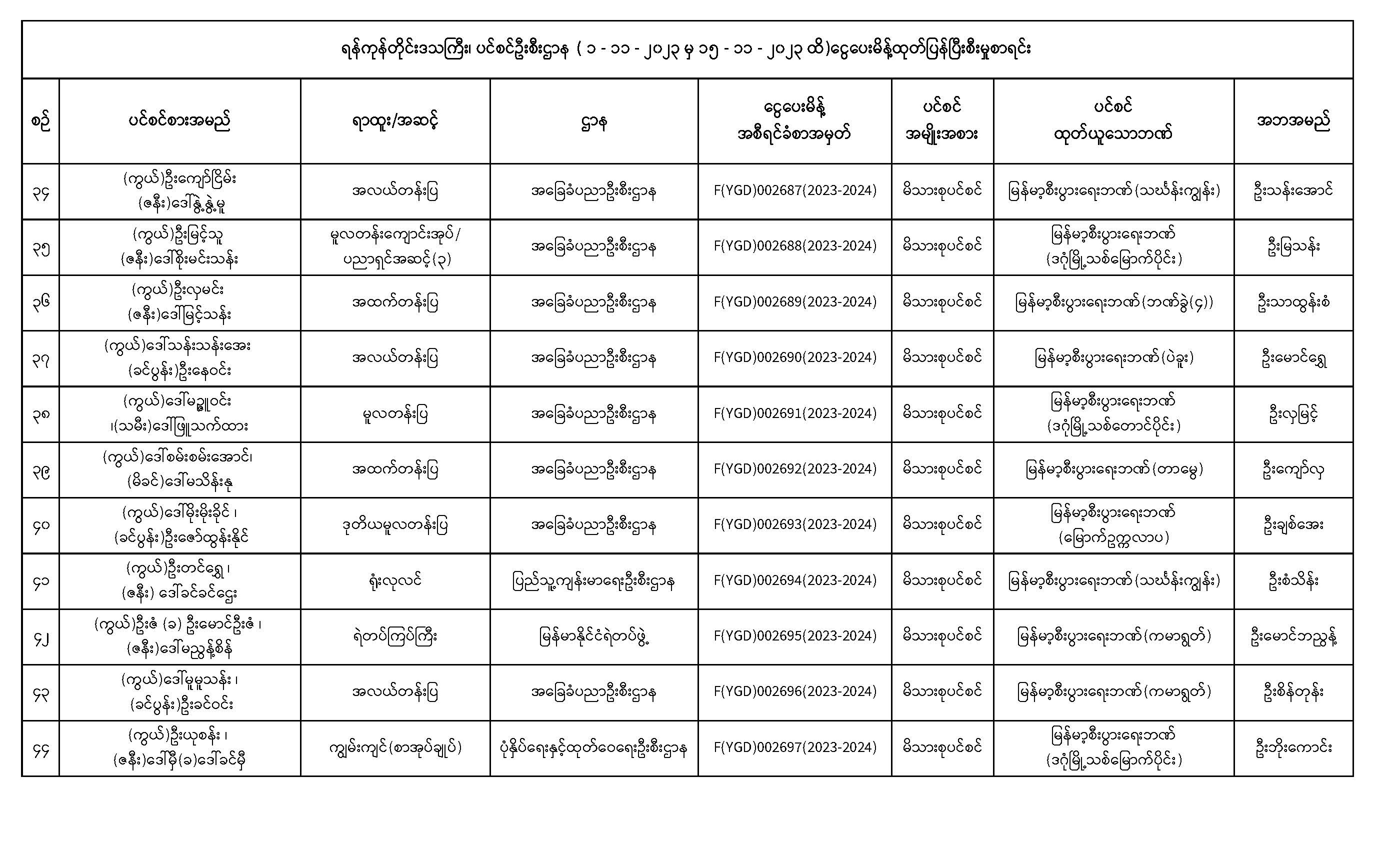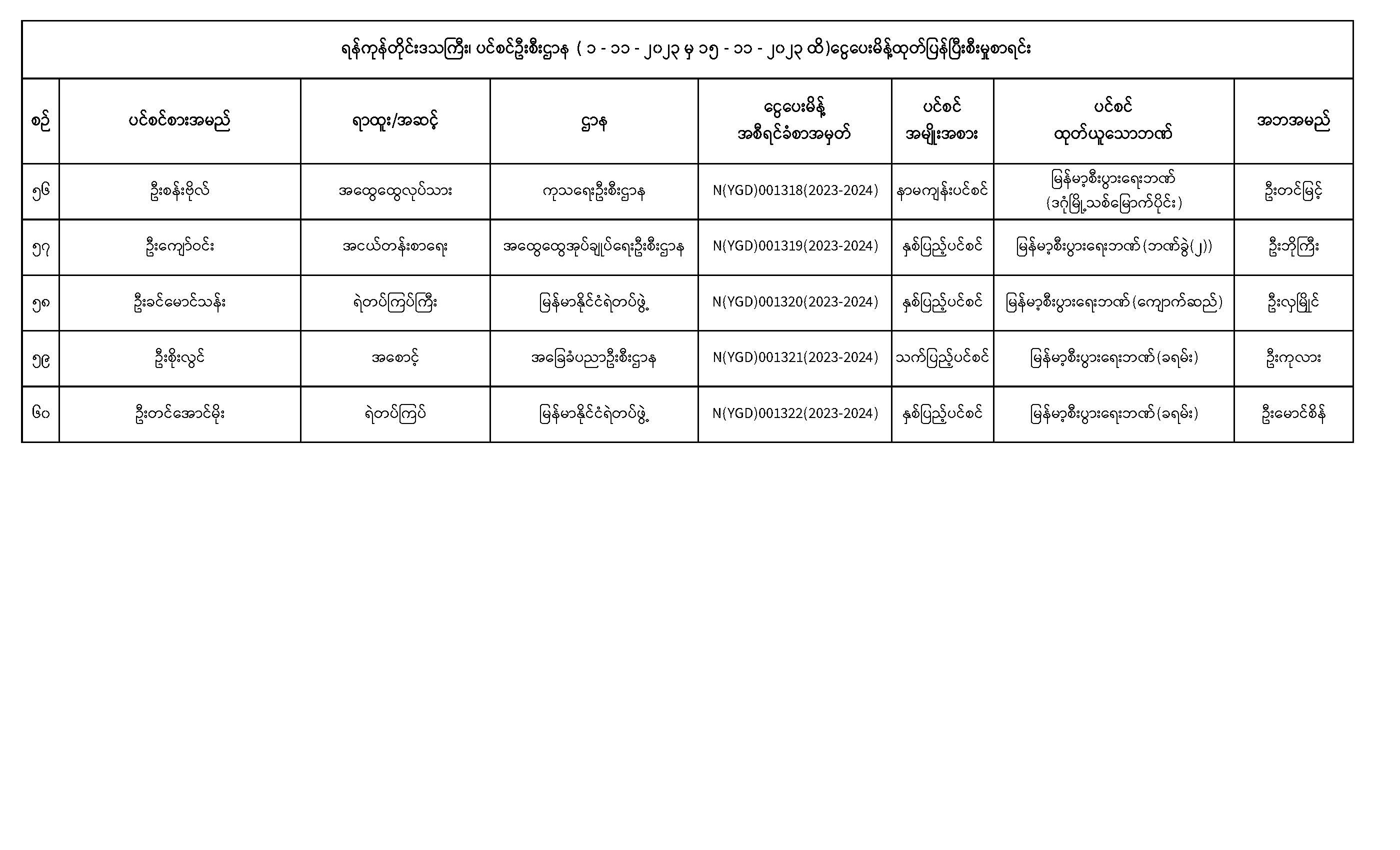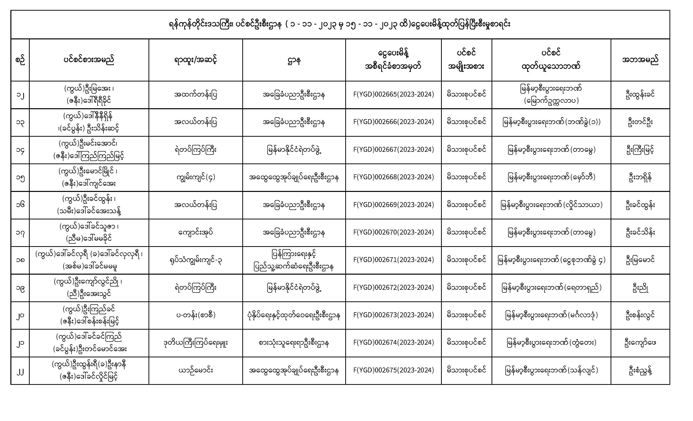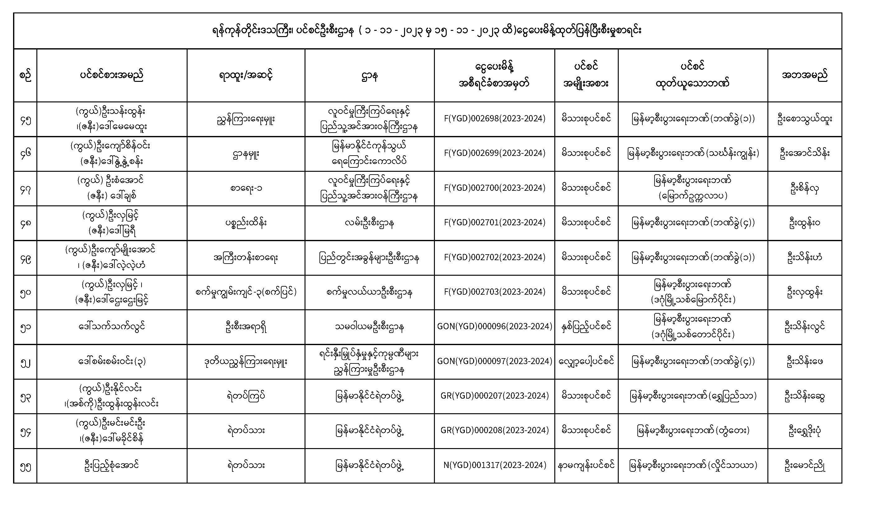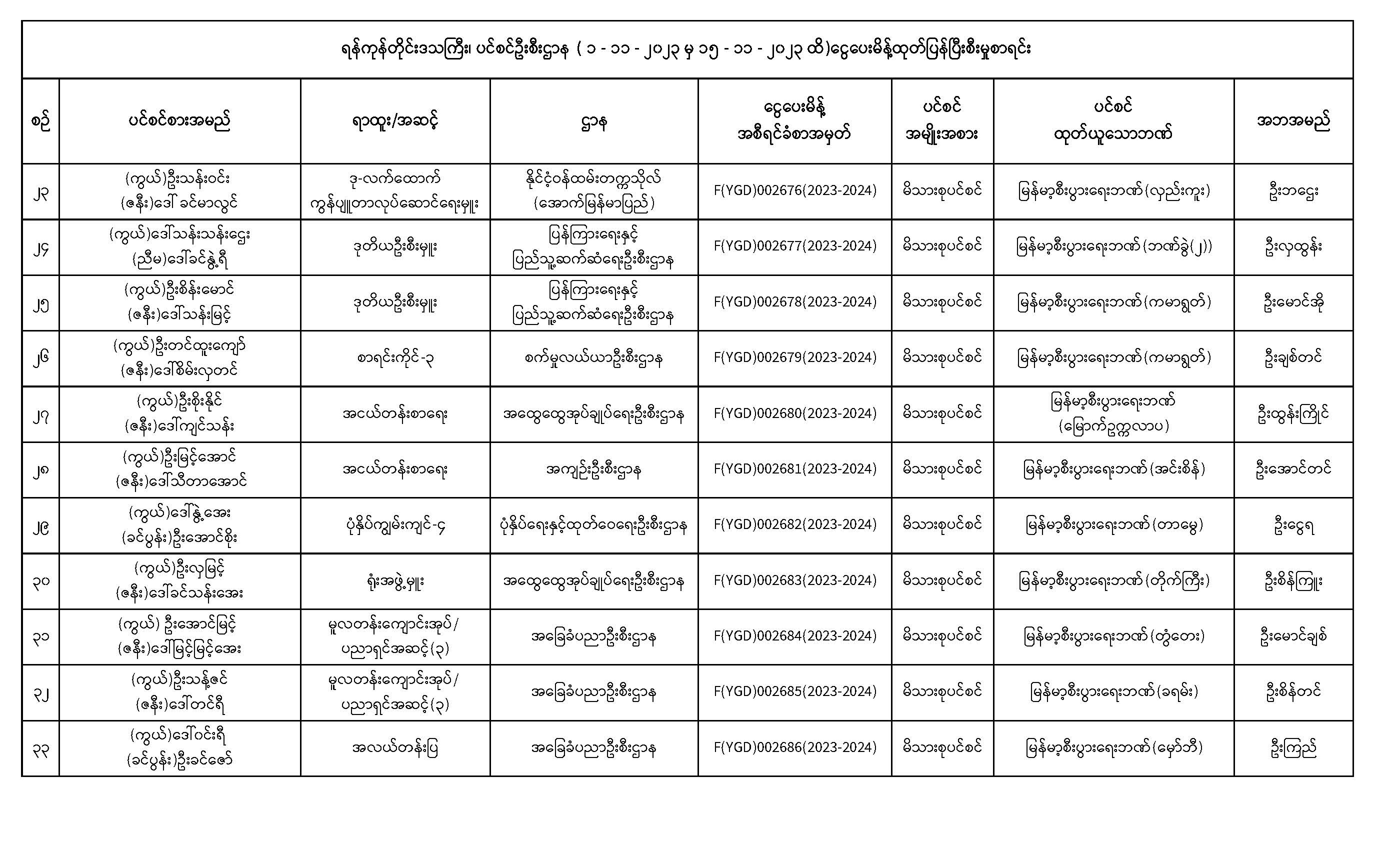 ပင်စင်ဦးစီးဌာန၊ ရန်ကုန်တိုင်းဒေသကြီးဦးစီးမှူးရုံး၏ ငွေပေးမိန့်ထုတ်ပြန်မှုစာရင်း (၁-၁၁-၂၀၂၃ မှ ၁၅-၁၁-၂၀၂၃) pdfinance_editor Thu, 11/16/2023 - 14:39