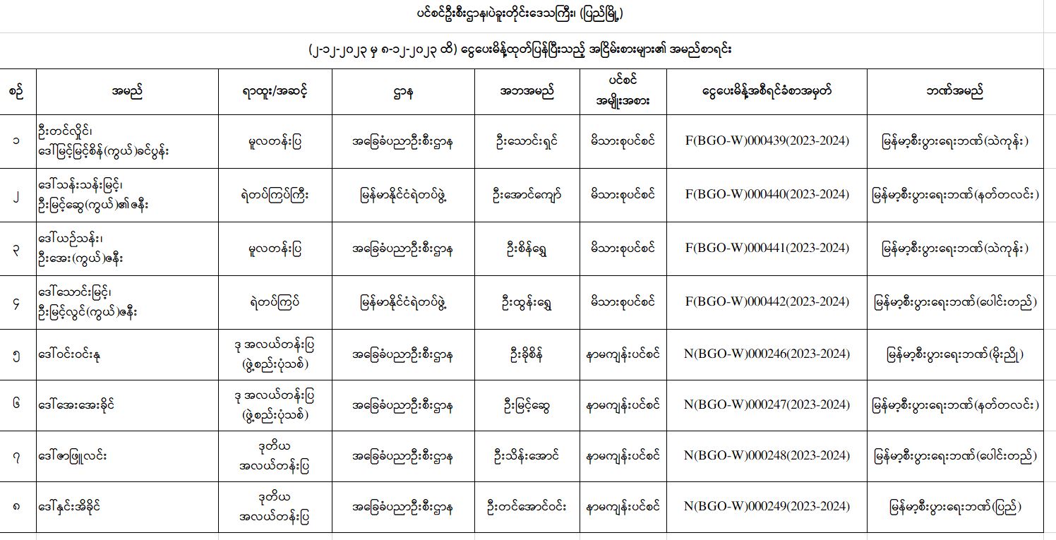 ပင်စင်ဦးစီးဌာန၊ ပဲခူးတိုင်းရုံးခွဲ(ပြည်မြို့)၏ ငွေပေးမိန့်ထုတ်ပြန်မှုစာရင်း (၂-၁၂-၂၀၂၃ မှ ၈-၁၂-၂၀၂၃) pdfinance_editor Wed, 12/06/2023 - 16:13