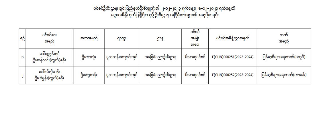 ပင်စင်ဦးစီးဌာန၊ ချင်းပြည်နယ်ဦးစီးမှူးရုံး၏ ငွေပေးမိန့်ထုတ်ပြန်မှုစာရင်း (၂-၁၂-၂၀၂၃ မှ ၈-၁၂-၂၀၂၃) pdfinance_editor Mon, 12/11/2023 - 11:37
