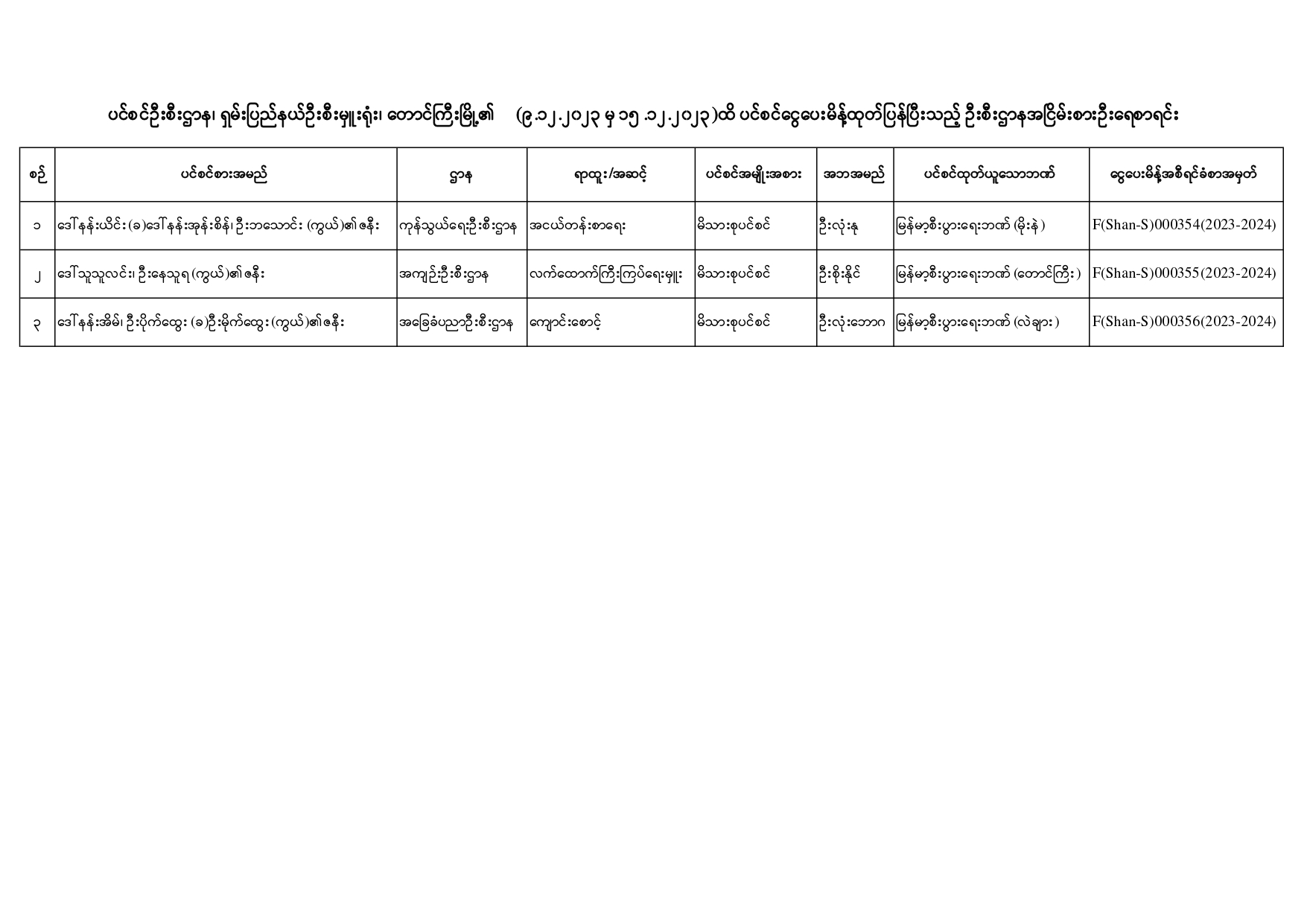 ပင်စင်ဦးစီးဌာန၊ ရှမ်းပြည်နယ်ဦးစီးမှူးရုံး၏ ငွေပေးမိန့်ထုတ်ပြန်မှုစာရင်း (၉-၁၂-၂၀၂၃ မှ ၁၅-၁၂-၂၀၂၃) pdfinance_editor Fri, 12/15/2023 - 11:04
