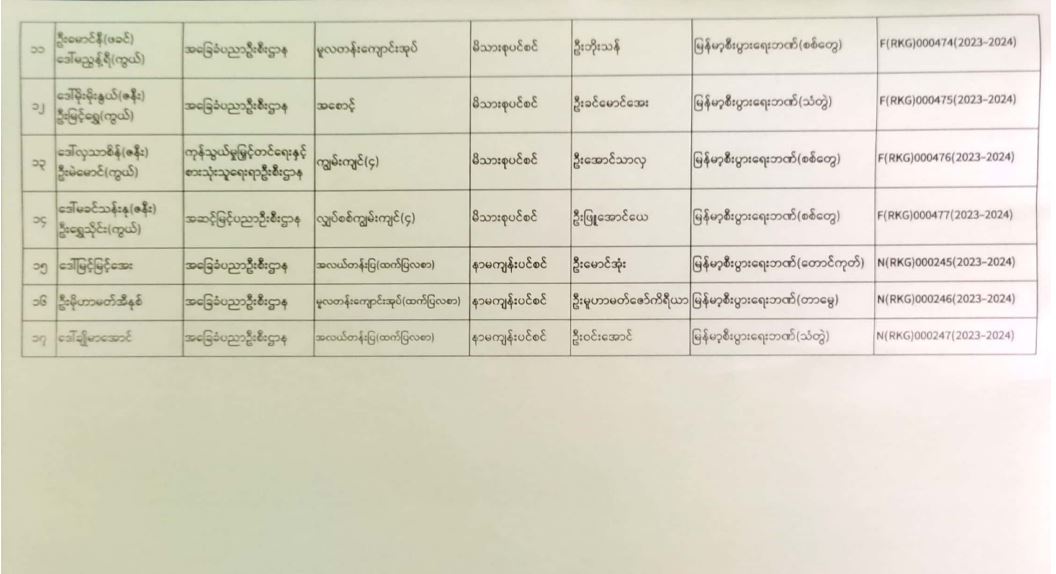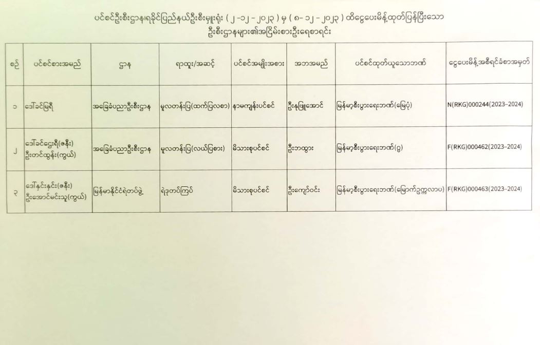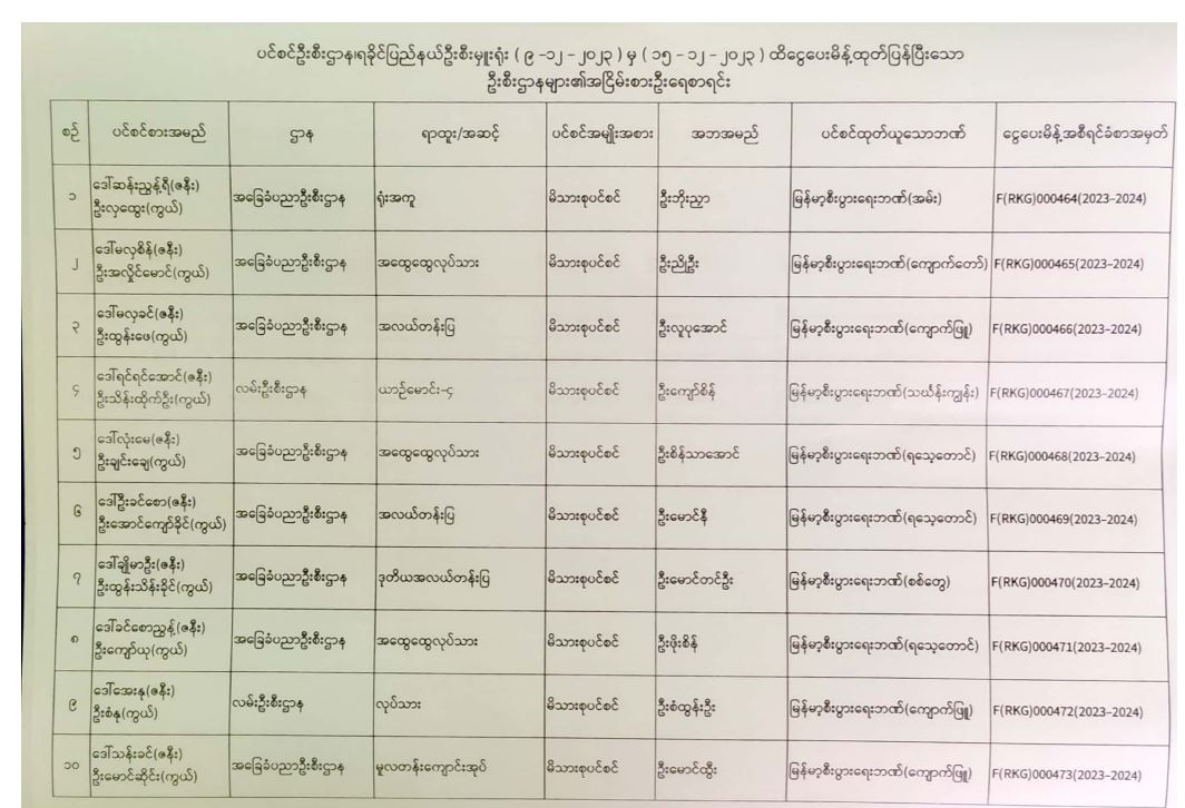ပင်စင်ဦးစီးဌာန၊ ရခိုင်ပြည်နယ်ဦးစီးမှူးရုံး၏ ငွေပေးမိန့်ထုတ်ပြန်မှုစာရင်း (၂-၁၂-၂၀၂၃ မှ ၁၅-၁၂-၂၀၂၃