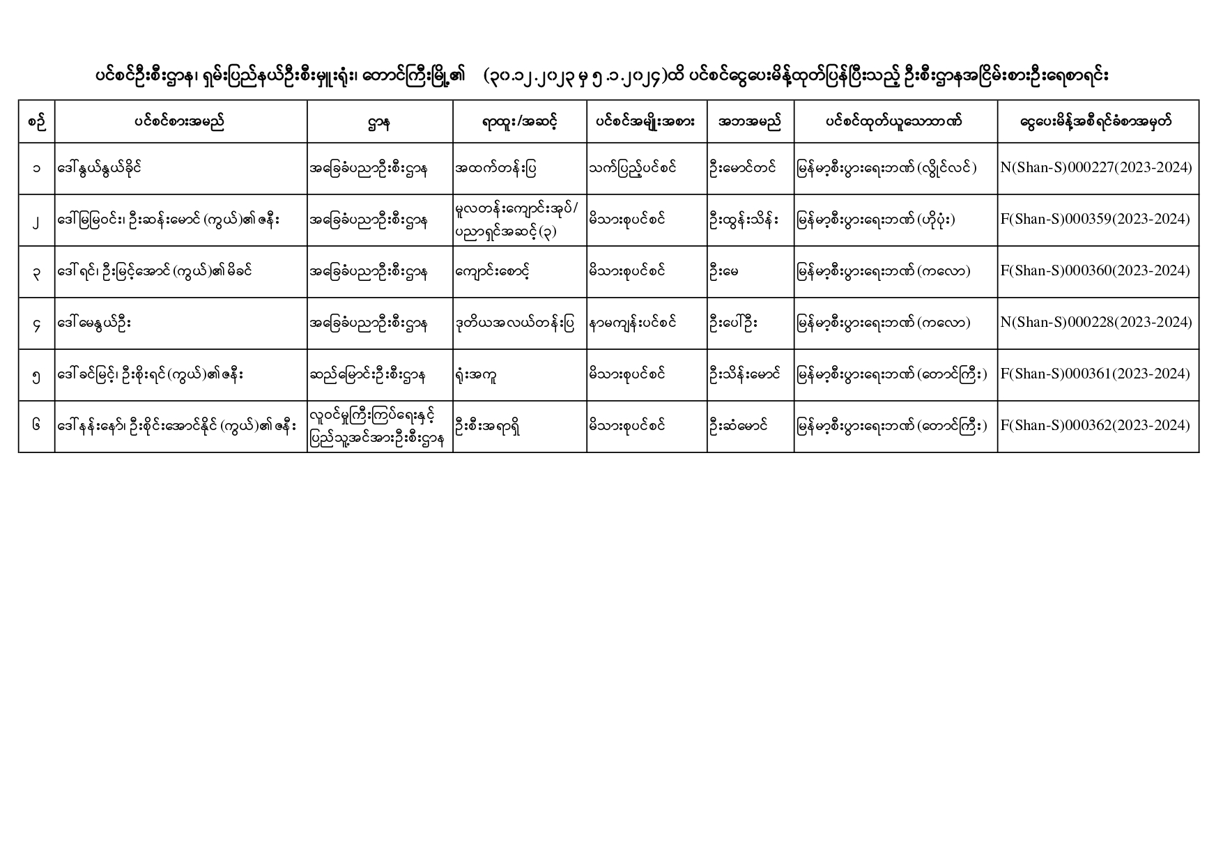 ပင်စင်ဦးစီးဌာန၊ ရှမ်းပြည်နယ်ဦးစီးမှူးရုံး၏ ငွေပေးမိန့်ထုတ်ပြန်မှုစာရင်း (၃၀-၁၂-၂၀၂၃ မှ ၅-၁-၂၀၂၄) pdfinance_editor Mon, 01/08/2024 - 10:05
