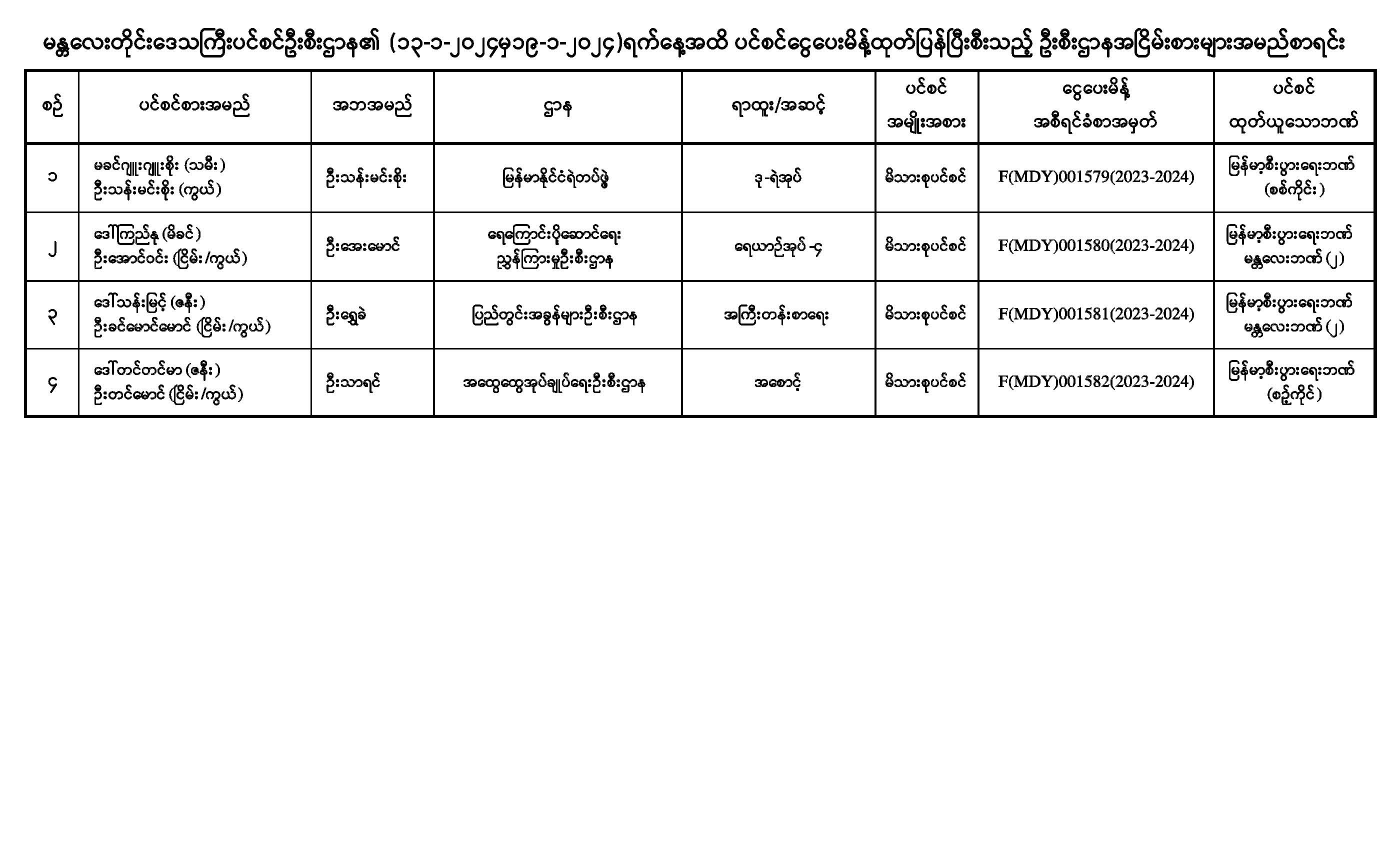 ပင်စင်ဦးစီးဌာန၊ မန္တလေးတိုင်းဒေသကြီးဦးစီးမှူးရုံး၏ ငွေပေးမိန့်ထုတ်ပြန်မှုစာရင်း (၁၃-၁-၂၀၂၄ မှ ၁၉-၁-၂၀၂၄) pdfinance_editor Fri, 01/19/2024 - 16:22