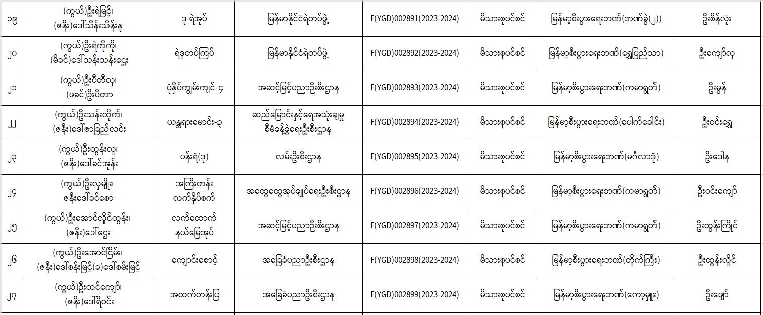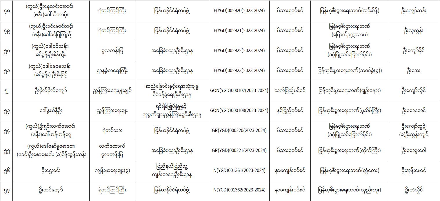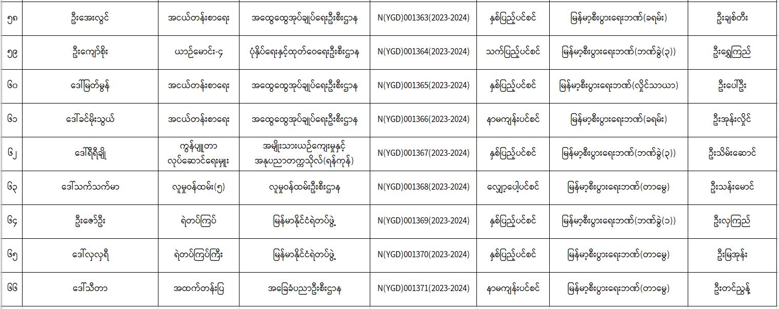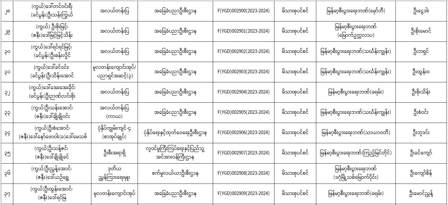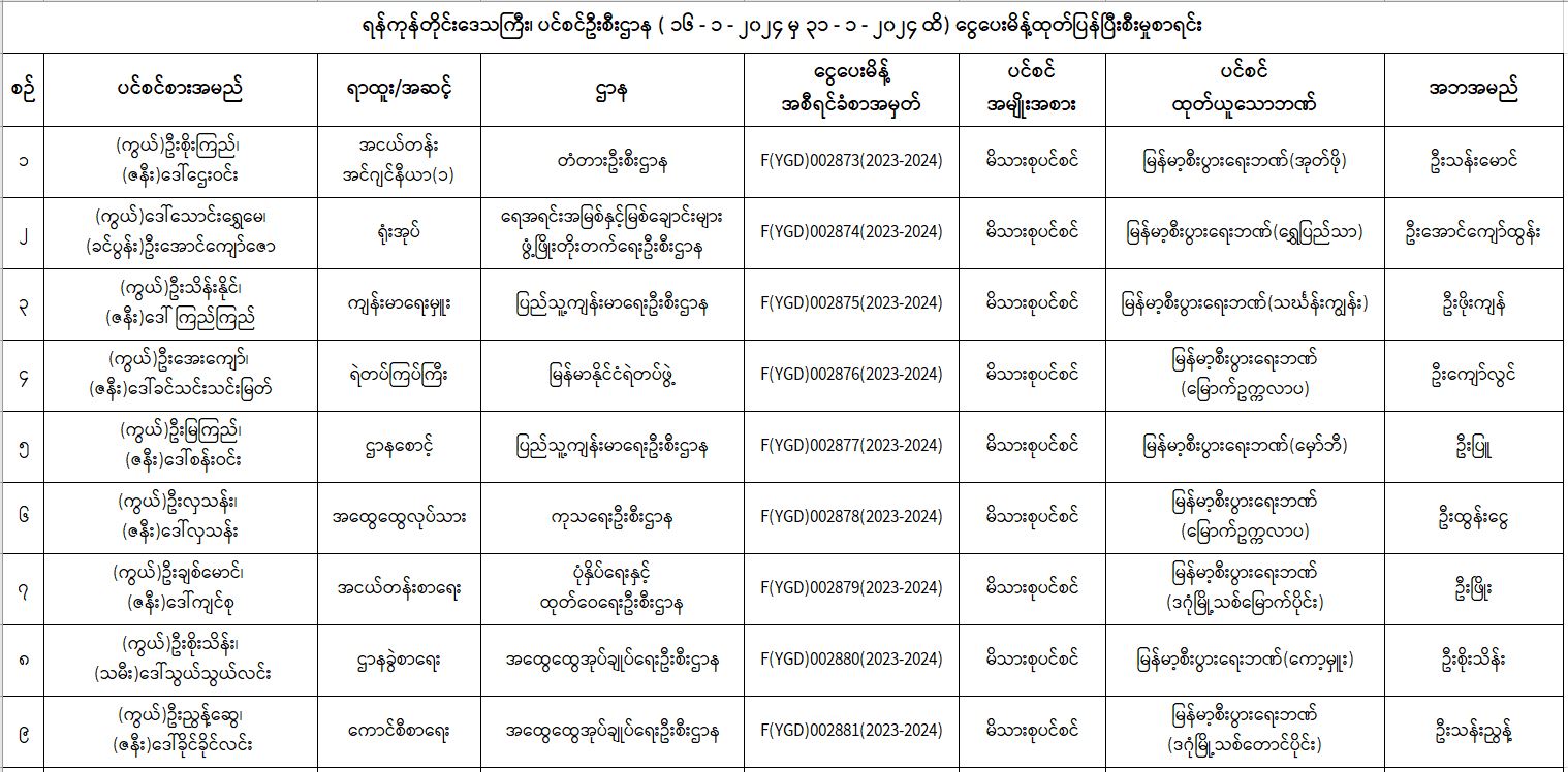 ပင်စင်ဦးစီးဌာန၊ ရန်ကုန်တိုင်းဒေသကြီးဦးစီးမှူးရုံး၏ ငွေပေးမိန့်ထုတ်ပြန်မှုစာရင်း (၁၆-၁-၂၀၂၄ မှ ၃၁-၁-၂၀၂၄) pdfinance_editor Tue, 02/06/2024 - 15:30