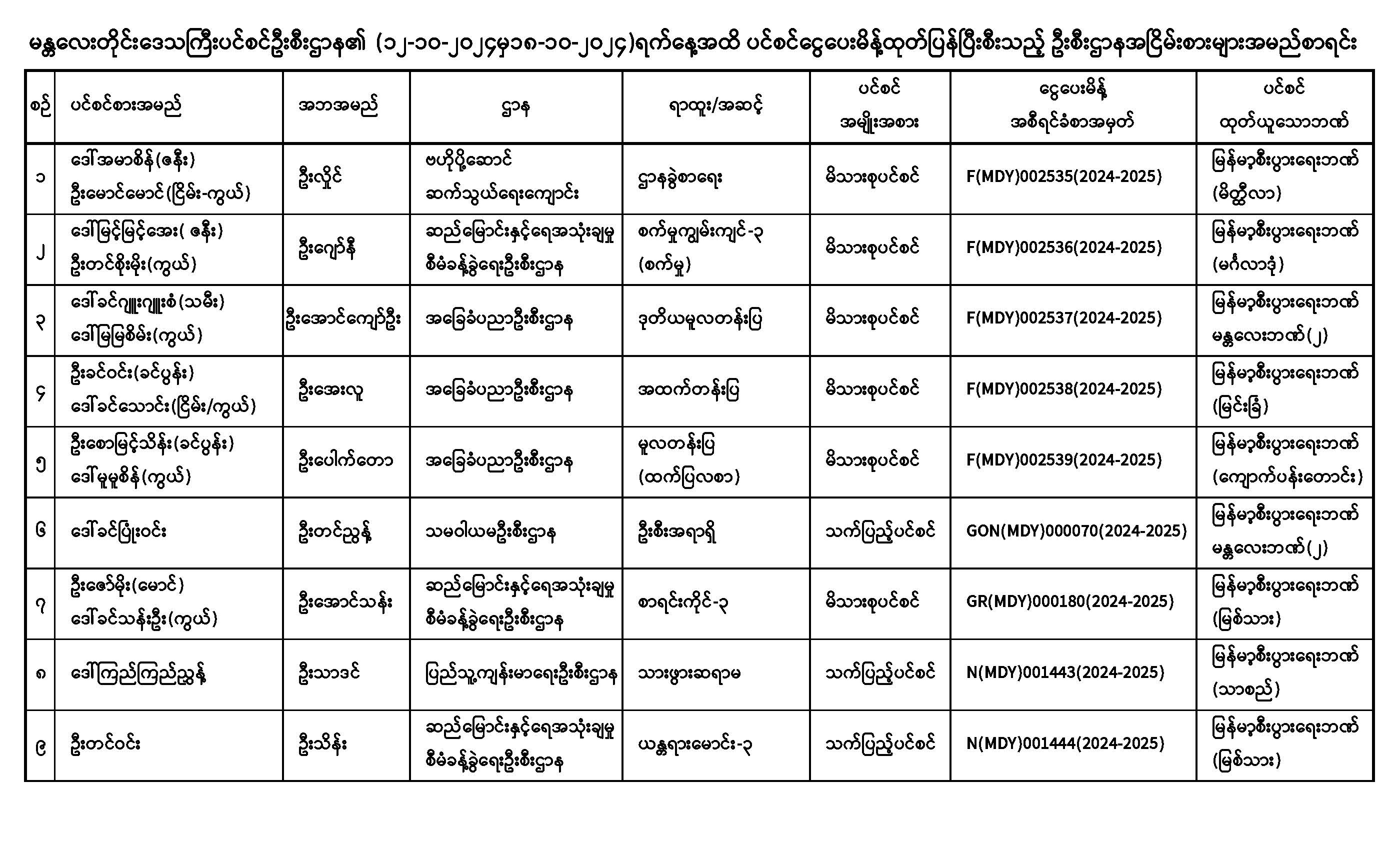 ပင်စင်ဦးစီးဌာန၊ မန္တလေးတိုင်းဒေသကြီးဦးစီးမှူးရုံး၏ ငွေပေးမိန့်ထုတ်ပြန်မှုစာရင်း (၁၂-၁၀-၂၀၂၄ မှ ၁၈-၁၀-၂၀၂၄) pdfinance_editor Tue, 10/15/2024 - 15:08