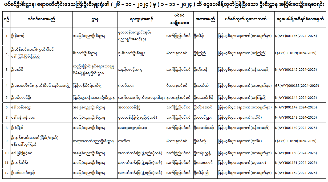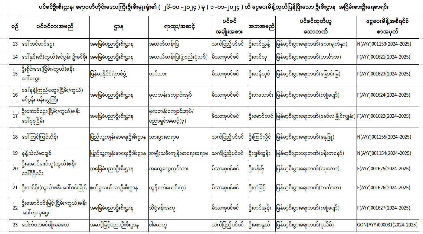 ပင်စင်ဦးစီးဌာန၊ ဧရာဝတီတိုင်းဒေသကြီးဦးစီးမှူးရုံး၏ ငွေပေးမိန့်ထုတ်ပြန်မှုစာရင်း (၂၆-၁၀-၂၀၂၄ မှ ၁-၁၁-၂၀၂၄) pdfinance_editor Mon, 11/04/2024 - 14:53