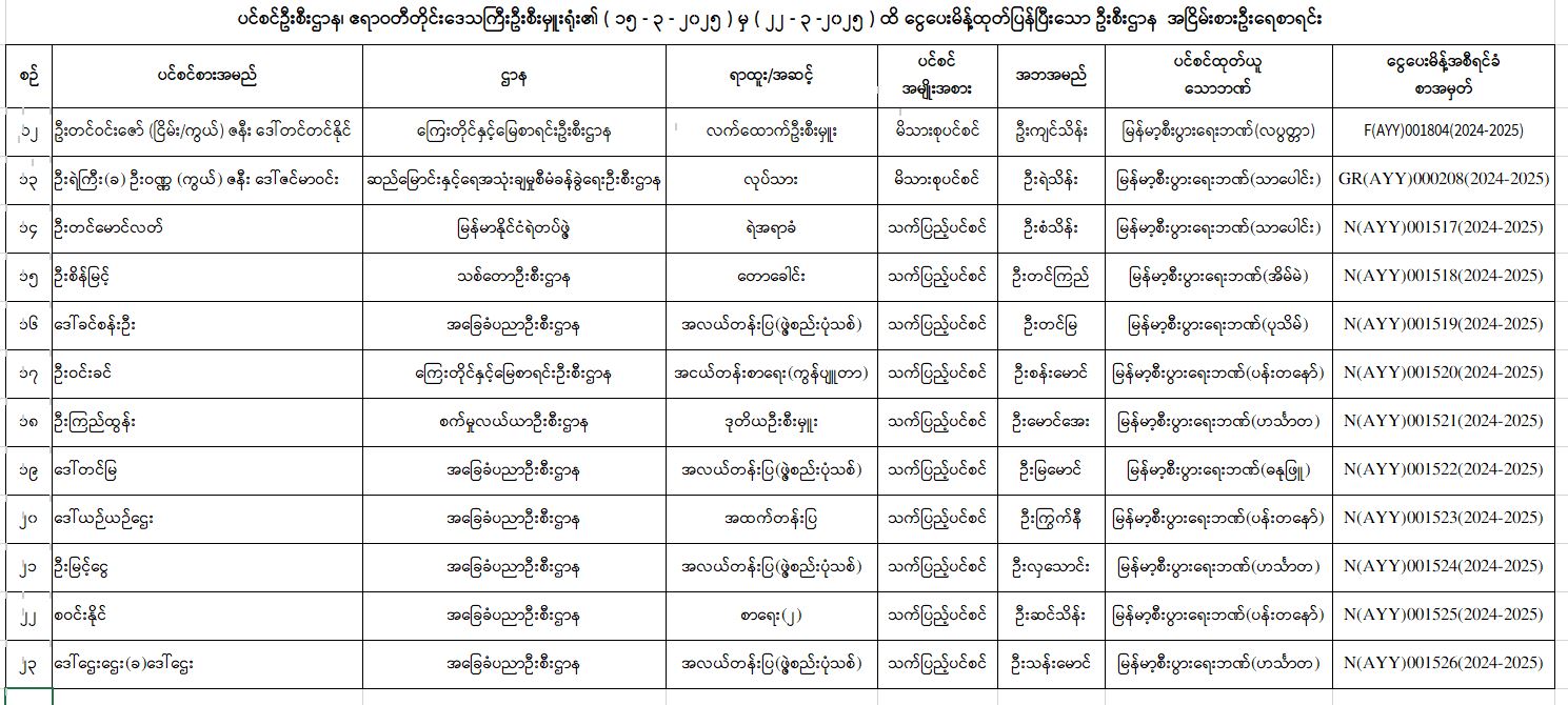 ပင်စင်ဦးစီးဌာန၊ ဧရာဝတီတိုင်းဒေသကြီးဦးစီးမှူးရုံး၏ ငွေပေးမိန့်ထုတ်ပြန်မှုစာရင်း (၁၅-၃-၂၀၂၅ မှ ၂၂-၃-၂၀၂၅) pdfinance_editor Fri, 03/21/2025 - 11:50