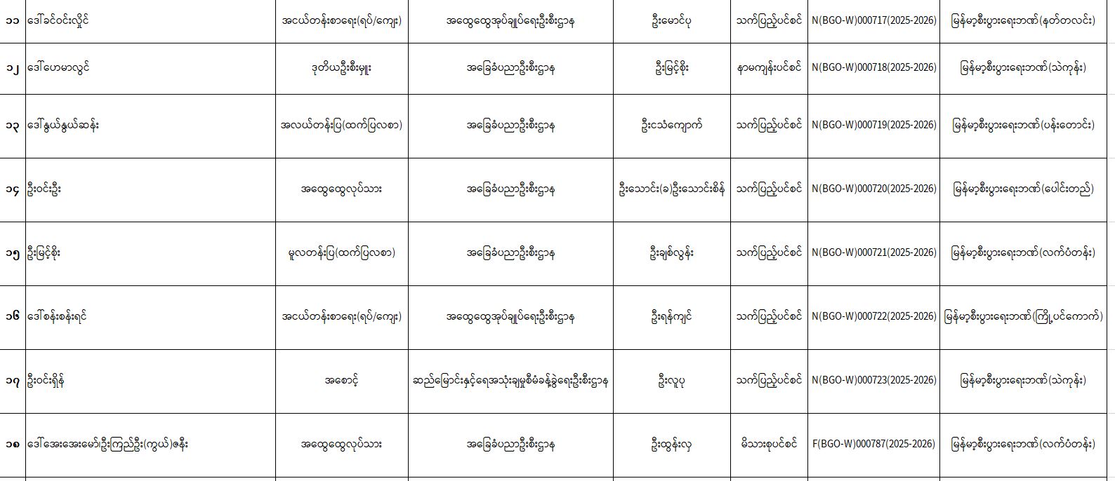 ပင်စင်ဦးစီးဌာန၊ ပဲခူးတိုင်းရုံးခွဲ(ပြည်မြို့)၏ ငွေပေးမိန့်ထုတ်ပြန်မှုစာရင်း (၃-၅-၂၀၂၅ မှ ၂၀-၆-၂၀၂၅) pdfinance_editor Tue, 06/24/2025 - 14:32
