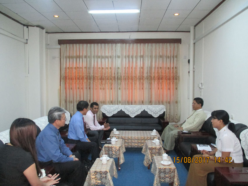 ၁၅-၈-၂၀၁၇ ရက်နေ့ နေ့လည် ၂:၃၀ နာရီတွင် Pana Harrison (Asia) Pte. Ltd. မှ Regional Director နှင့် Swiss Re မှ Vice President ဦးဆောင်သည့်အဖွဲ့တို့ မြန်မာ့အာမခံလုပ်ငန်းသို့ လာရောက်၍ အထွေထွေမန်နေဂျာနှင့်တွေ့ဆုံပြီး Reinsurance နှင့် Engineering Insurance အကြောင်း ဆွေးနွေးခဲ့ပါသည်။