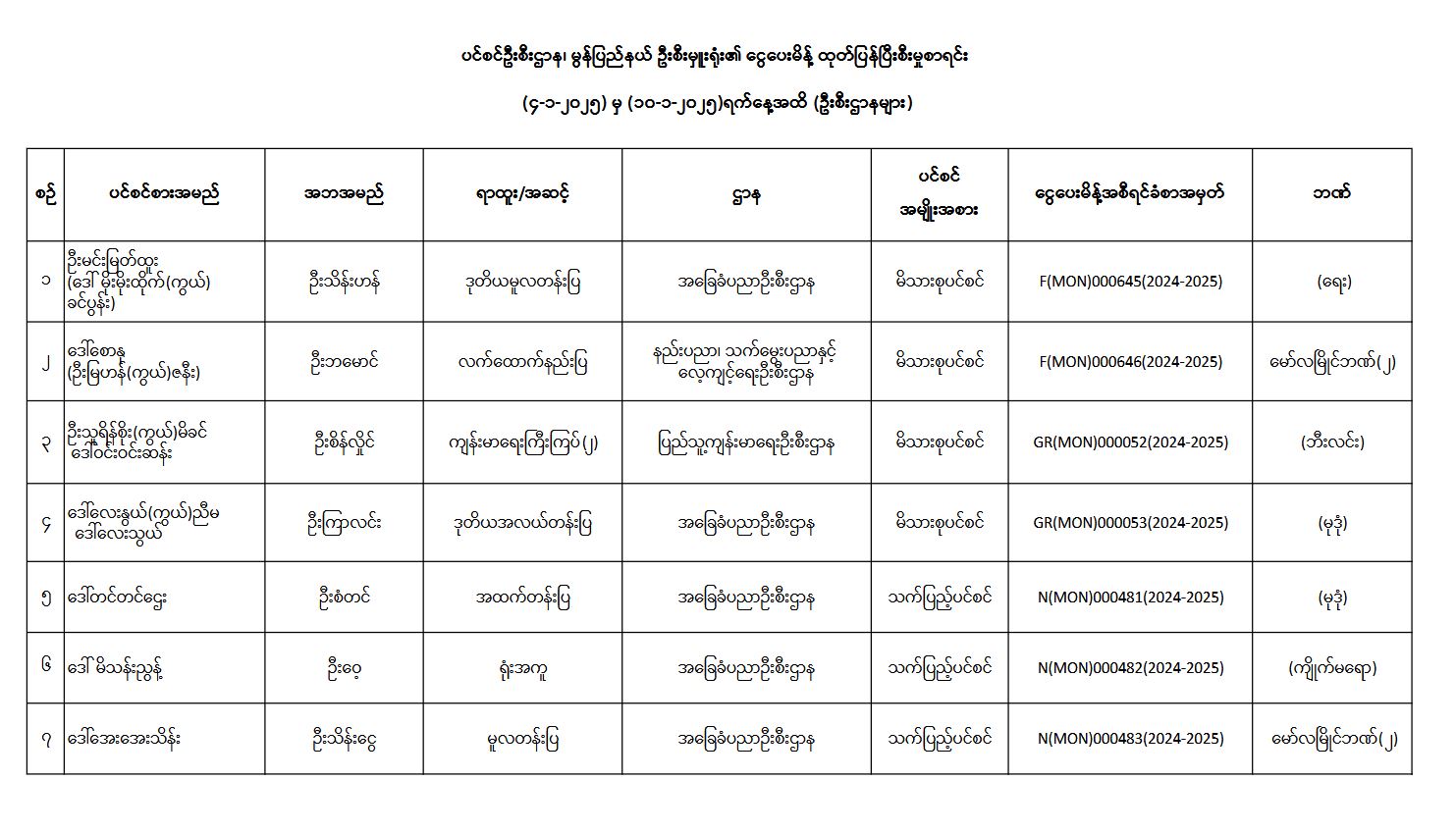 မြန်မာ့လယ်ယာဖွံ့ဖြိုးရေးဘဏ် မှ အငယ်တန်းစာရေး၊ ငွေကိုင်(၄)၊ ဒုလက်ထောက်ကွန်ပျူတာလုပ်ဆောင်ရေးမှူး၊ ရုံးအကူ/စာပို့၊ အစောင့် ရာထူးများအတွက်လျှောက်လွှာခေါ်ယူခြင်း