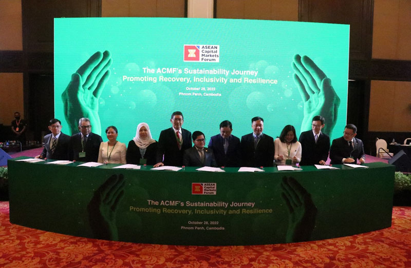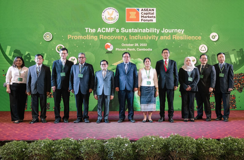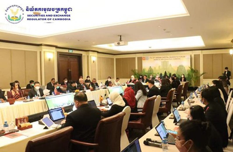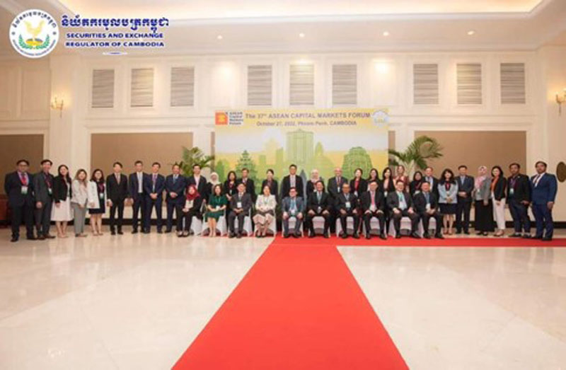 အောက်တိုဘာလ ၂၈ ရက်နေ့တွင် ကမ္ဘောဒီးယားနိုင်ငံ၊ ငွေချေးသက်သေခံလက်မှတ်လုပ်ငန်းကြီးကြပ်ရေးကော်မရှင်၊ အာဆီယံအရင်းအနှီးဈေးကွက်ဖိုရမ်နှင့် အာရှဖွံ့ဖြိုးရေးဘဏ်တို့ပူးပေါင်းကျင်းပသည့် အာဆီယံဒေသတွင်းအရင်းအနှီးဈေးကွက်ဖိုရမ် ဖွံ့ဖြိုးတိုးတက်ရေးဆိုင်ရာ အပြည်ပြည်ဆိုင်ရာနှီးနှောဖလှယ်ပွဲကိုကျင်းပရာ ကမ္ဘောဒီးယားနိုင်ငံ စီးပွားရေးနှင့်ဘဏ္ဍာရေးဝန်ကြီးဌာန၊ ဒုတိယဝန်ကြီးနှင့် ငွေရေးကြေးရေးအဖွဲ့အစည်းများ ကြီးကြပ်ရေးအာဏာပိုင်၊ ဒုတိယဥက္ကဌ H.E Mr. Ros Seilave ၊ ကမ္ဘောဒီးယားနိုင်ငံ၊ ငွေချေးသက်သေခံလက်မှတ်လုပ်ငန်းကြီးကြပ်ရေးကော်မရှင်၊ ညွှန်ကြားရေးမှူးချုပ် Mr. Sou Socheat နှင့် အာရှဖွံ့ဖြိုးရေးဘဏ်၊ အရှေ့တောင်အာရှဌာန၊ ဒုတိယညွှန်ကြားရေးမှူးချုပ် Mr. Winfried F. Wicklein တို့က အဖွင့်အမှာစကားများ အသီးသီးပြောကြားခဲ့ကြသည်။ ဆက်လက်၍ ၂၇-၁၀-၂၀၂၂ ရက်နေ့တွင် ကျင်းပပြုလုပ်ခဲ့သည့် အာဆီယံအရင်းအနှီးဈေးကွက်ဖိုရမ်ဥက္ကဌများအစည်းအဝေးမှ သဘောတူညီခဲ့သည့် သဘောတူညီခဲ့သည့် The ASEAN Sustainability-Linked Bond Standards ၊ The ASEAN Sustainable and Responsible Fund Standards ၊ The ASEAN CIS Digital Repository နှင့် Legal Wrappers for the SDG Bond Toolkit တို့ကို မိတ်ဆက်တင်ပြခဲ့ရာ အာဆီယံနိုင်ငံ ၁၀ နိုင်ငံမှ ကော်မရှင်အကြီးအကဲများက စက်ခလုတ်နှိ်ဖွင့်လှစ်ပေးခဲ့သည်။