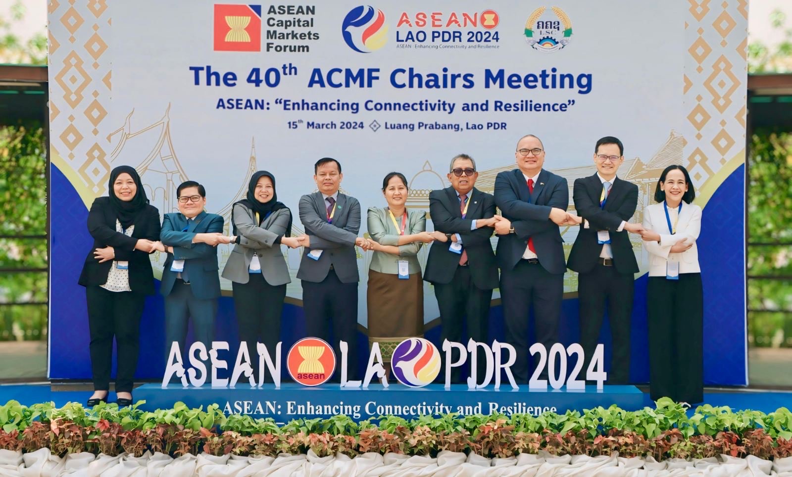 (၄၀)ကြိမ်မြောက် အာဆီယံအရင်းအနှီးဈေးကွက်ဖိုရမ် ဥက္ကဋ္ဌများအစည်းအဝေး (40th ASEAN Capital Market Forum-ACMF Chairs Meeting) ကို လာအိုနိုင်ငံ၊ လမ်ပရာဘွမ်မြို့တွင် ၂၀၂၄ ခုနှစ်၊ မတ်လ ၁၅ ရက်မှ ၁၆ ရက်နေ့အထိ ကျင်းပခဲ့ရာ ACMF အလှည့်ကျဥက္ကဋ္ဌ လာအိုနိုင်ငံ၊ ငွေချေးသက်သေခံလက်မှတ်လုပ်ငန်းကြီးကြပ်ရေးကော်မရှင်၏ ဖိတ်ကြားချက်အရ မြန်မာနိုင်ငံငွေချေးသက်သေခံလက်မှတ်လုပ်ငန်းကြီးကြပ်ရေးကော်မရှင် (Securities and Exchange Commission of Myanmar SECM) မှ ကိုယ်စားလှယ်အဖွဲ့တက်ရောက်ခဲ့ပါသည်။ အစည်းအဝေးသို့ အာဆီယံအရင်းအနှီးဈေးကွက်ဖိုရမ်အဖွဲ့ဝင်များဖြစ်သည့် အာဆီယံ (၁၀) နိုင်ငံရှိ ငွေချေးသက်သေခံလက်မှတ်လုပ်ငန်းကြီးကြပ်ရေးကော်မရှင်များမှ ဥက္ကဋ္ဌများ ၊ အတွင်းရေးမှူးများ၊ အာဆီယံအတွင်းရေးမှူးချုပ်ရုံး၊ အာရှဖွံ့ဖြိုးရေးဘဏ်နှင့် Sustainable Finance Institute Asia-SFIA တို့မှ ကိုယ်စားလှယ်များ စုစုပေါင်း ၁၀၁ ဦး တက်ရောက်ကြောင်းသိရှိရသည်။