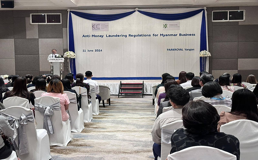 ရန်ကုန်စတော့အိပ်ချိန်းနှင့် Kelvin Chai Yangon Ltd (KCY)တို့ပူးပေါင်းကျင်းပသည့် Jointly Seminar on Anti-Money Laundering Regulations for Myanmar Business ကို ၁၁-၆-၂၀၂၄ ရက် မွန်းလွဲ ၁၅:၃၀ အချိန်တွင် Park Royal Yangon Hotel တွင်ကျင်းပရာ မြန်မာနိုင်ငံငွေချေးသက်သေခံလက်မှတ်လုပ်ငန်းကြီးကြပ်ရေးကော်မရှင်အတွင်းရေးမှူး တက်ရောက်အမှာစကားပြောကြားခဲ့သည်။ ထို့နောက် ရန်ကုန်စတော့အိပ်ချိန်းအမှုဆောင်အကြီးတန်းမန်နေဂျာဦးမင်းသူက YSX and Compliance – Fostering a Strong Compliance for Listed ခေါင်းစဥ်ဖြင့်လည်းကောင်း၊ Kelvin Chai Yangon Ltd (KCY)မှ Regional Officer (KCP) Mr. Pedro Jose F. BERNARDO က Myanmar’s AML Regime and Crafting an Effective AML Compliance Framework ခေါင်းစဥ်ဖြင့် လည်းကောင်းတင်ပြဆွေးနွေးကြပါသည်။
