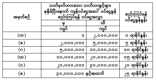 ဝင်ငွေခွန်နှုန်းထားအလိုက် ပေးဆောင်ရမည့် အခွန်နှုန်းဇယား