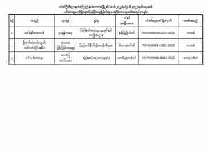 ပင်စင်ဦးစီးဌာန၊ ကယားပြည်နယ်ဦးစီးမှူးရုံး၏ ငွေပေးမိန့်ထုတ်ပြန်မှုစာရင်း (၁၁-၆-၂၀၂၂ မှ ၁၇-၆-၂၀၂၂)
